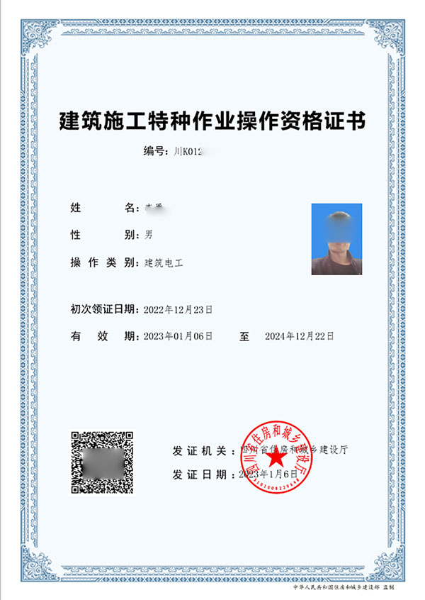 《建筑施工特種作業(yè)操作資格證書》